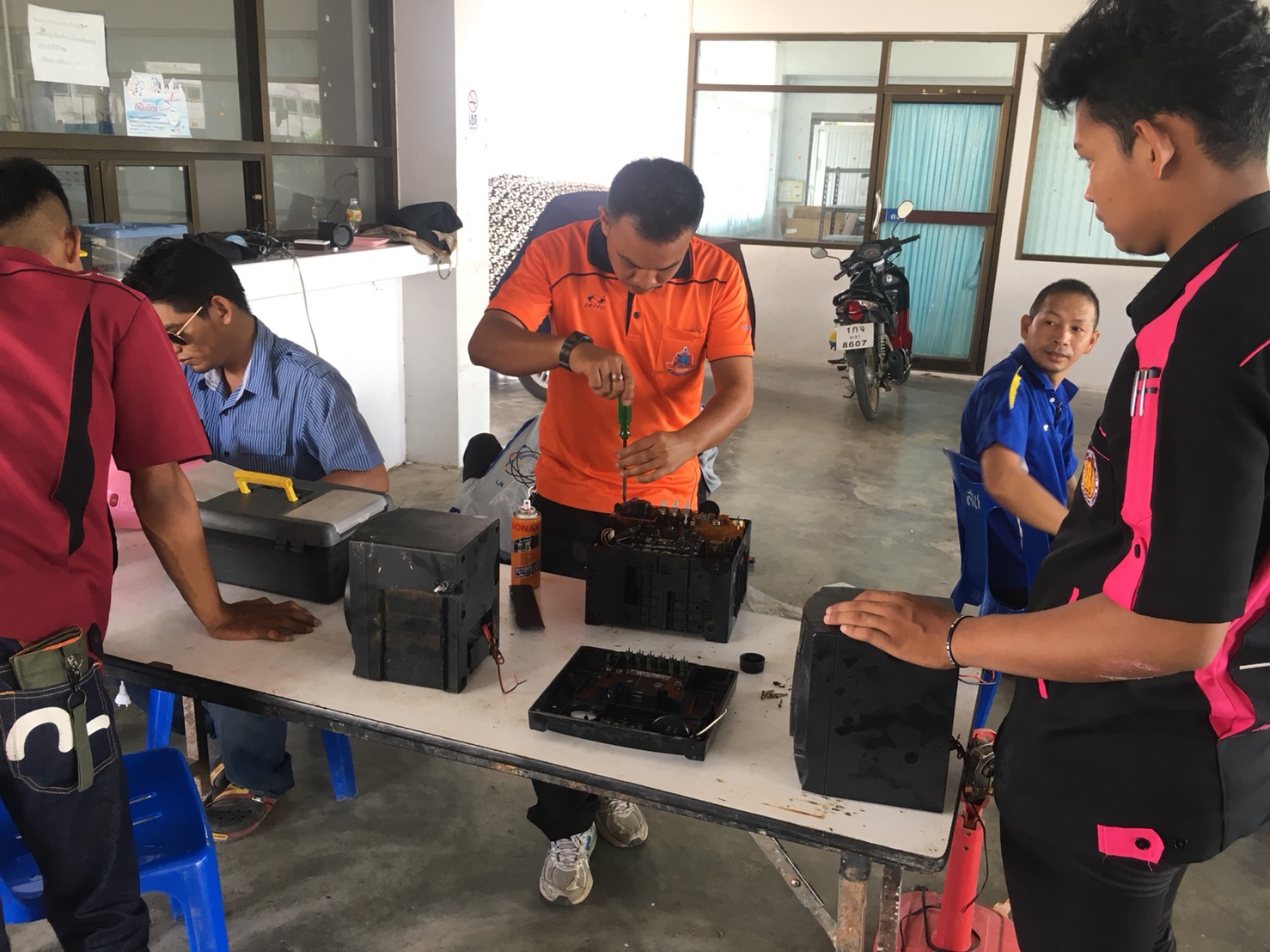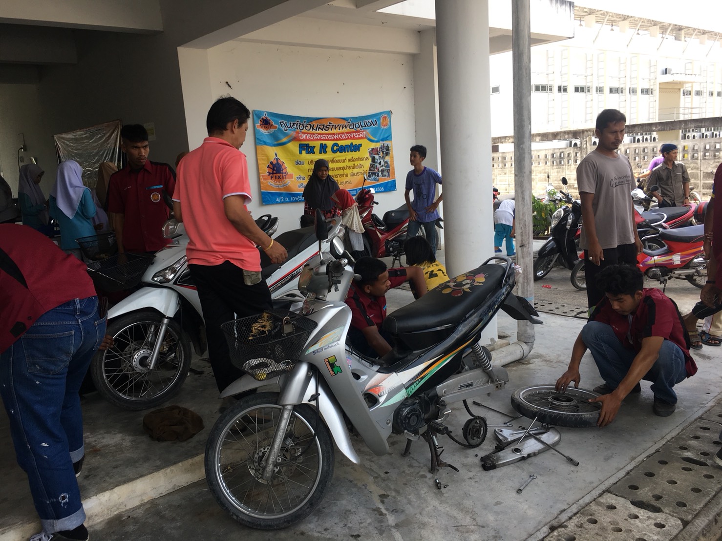 วันอาทิตย์ที่ 22 เม.ย 61 นายสถาพร จันทรคีรี หัวหน้างานงานโครงการพิเศษ นำคณะครูและนักเรียน นักศึกษาออกบริการศูนย์ซ่อมสร้างเพื่อชุมชน (fix it center) ณ ศูนย์จารู บ้านตลาดเก่า อ.เมือง จ.ยะลา