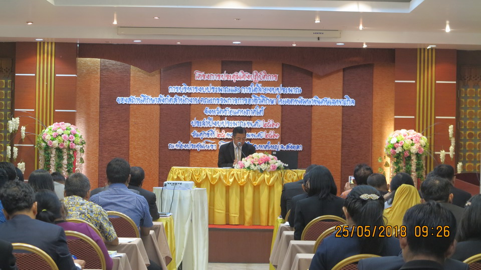 วันที่ 25 พฤษภาคม 2561 คณะผู้บริหารร่วมประชุม โครงการประชุมเชิงปฏิบัติการการบริหารงบประมาณและการใช้จ่ายงบประมาณ ของสถานศึกษาสังกัดสำนักงานคณะกรรมการการอาชีวศึกษา ในเขตพัฒนาพิเศษเฉพาะกิจ จังหวัดชายแดนภาคใต้ ประจำปีงบประมาณ 2561 ณ โรงแรมไดอิชิ อ.หาดใหญ่ จ.สงขลา