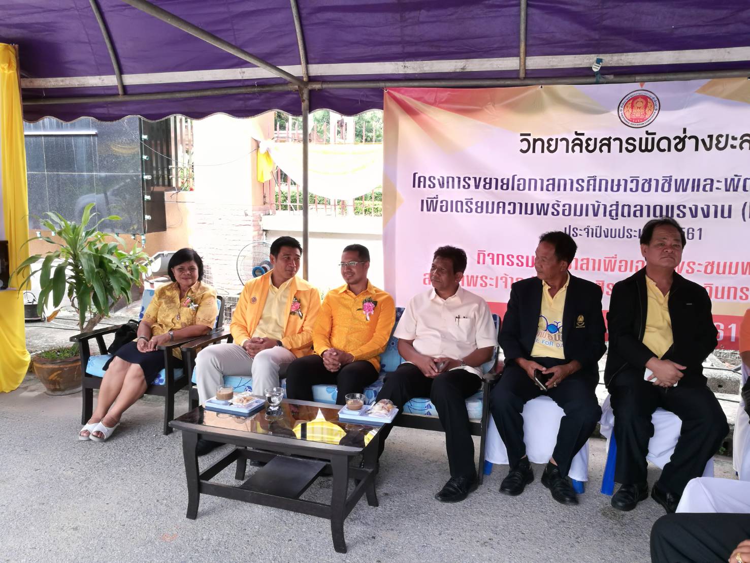 269442วันศุกร์ที่ 27 กรกฎาคม 2561 ครู และนักเรียน นักศึกษา วิทยาลัยสารพัดช่างยะลา  ได้รับมอบหมายจากนายภาณุวัฒน์  บุญยะรัตน์  ผู้อำนวยการวิทยาลัยสารพัดช่างยะลา ให้ดำเนินกิจกรรมขยายโอกาสทางการศึกษาวิชาชีพและพัฒนาทักษะวิชาชีพ เพื่อเตรียมความพร้อมเข้าสู่ตลาดแรงงาน (Fix it Center) กิจกรรมจิตอาสาเพื่อเฉลิมพระเกียรติพระชนมพรรษา สมเด็จพระเจ้าอยู่หัวมหาวชิราลงกรณ บดินทรเทพยวรางกูร โดยมีนายจักรพงษ์  พันธ์ุโชติ ปลัดอาวุโสอำเภอเมืองยะลา เป็นประธานในพิธี และกล่าวรายงานโดยนายภาณุวัฒ์  บุญญะรัตน์   ผู้อำนวยการวิทยาลัยสารพัดช่างยะลา  ภายในกิจกรรมมีการให้บริการเปลี่ยนถ่ายน้ำเครื่อง เช็คสภาพรถจักรยานยนต์  ซ่อมเครื่องใช้ไฟฟ้า และอุปกรณ์อิเล็กทรอนิกส์ ณ หน้าวิทยาลัยสารพัดช่างยะลา