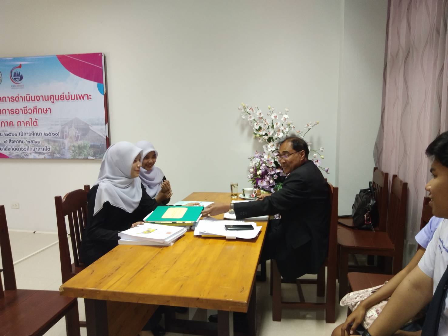 8449วันพฤหัสบดีที่ 2 สิงหาคม 2561 นำโดยนายอิทธิฤทธิ์ ศรีชุมภู รองผู้อำนวยการ หัวหน้างานส่งเสริมฯ ครู และนักศึกษาเข้ารับการติดตามผลการดำเนินงานศูนย์บ่มเพาะฯ ณ วิทยาลัยอาชีวศึกษา จังหวัดสงขลา