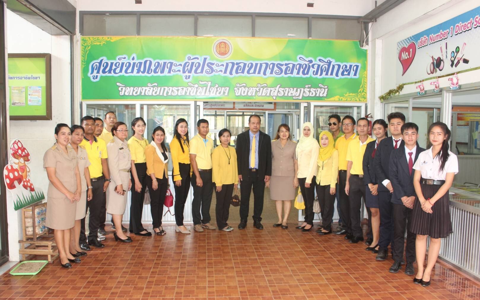 008วันจันทร์ที่ 6 สิงหาคม 2561 โดยนายอิทธิฤทธิ์  ศรีชุมภู รองผู้อำนวยการการวิทยาลัยสารพัดช่างยะลา นำคณะครูและบุคลากร ศึกษาดูงานสถานศึกษาเศรษฐกิจพอเพียง ณ วิทยาลัยการอาชีพไชยา จ.สุราษฎร์ธานี