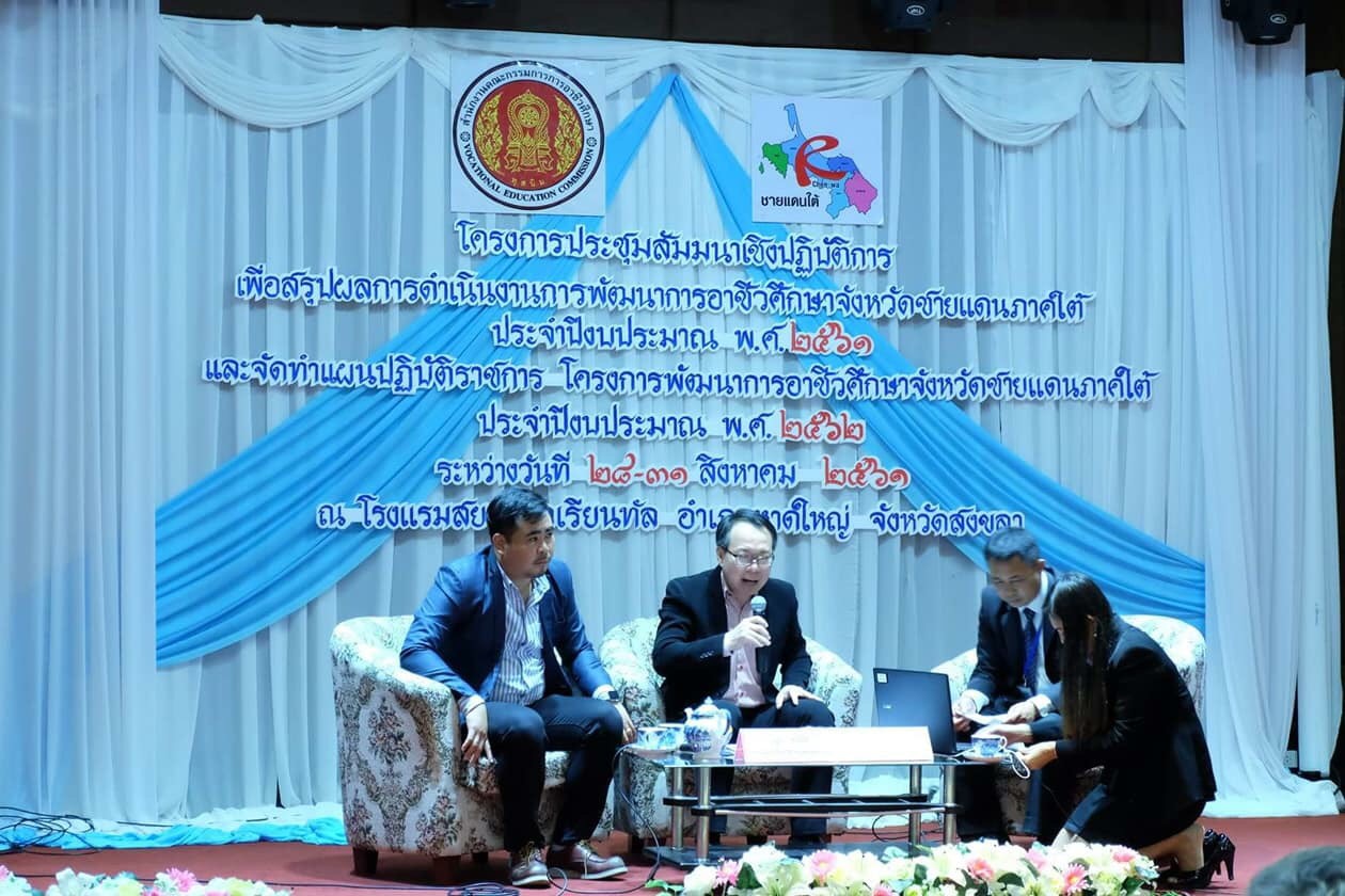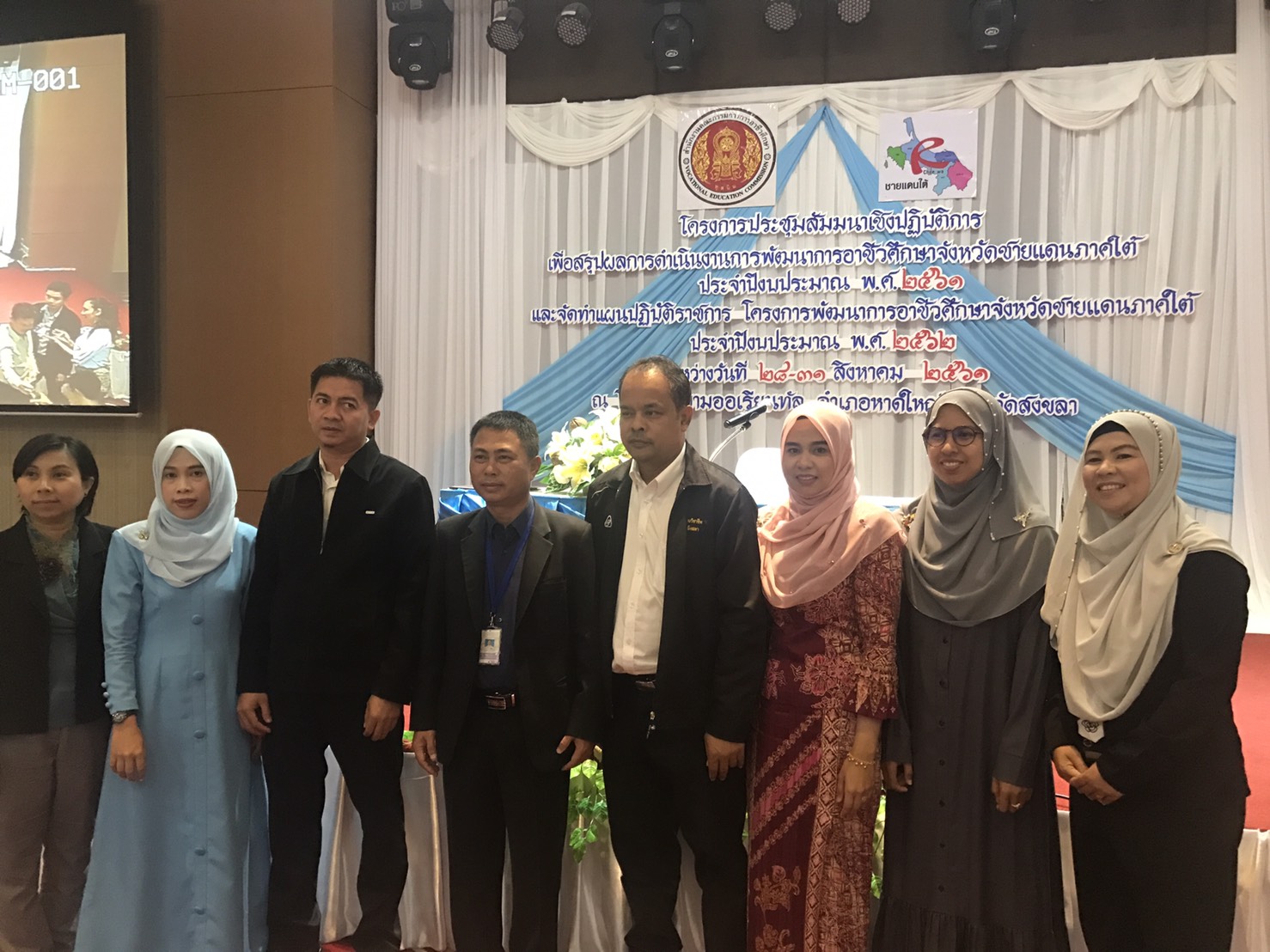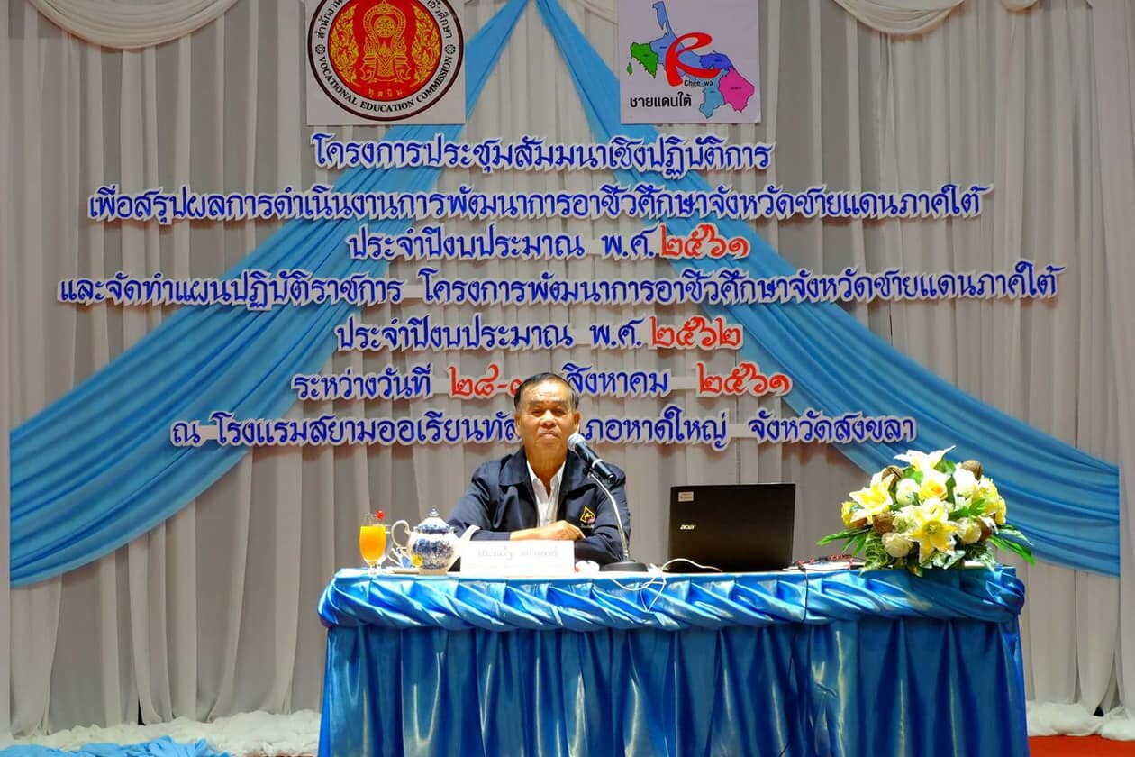 S 15294469วันที่ 28-31 สิงหาคม 2561 คณะผู้บริหารและบุคลากร วิทยาลัยสารพัดช่างยะลา ร่วมประชุมโครงการสัมมนาเชิงปฏิบัติการเพื่อสรุปผลการดำเนินงานการพัฒนาการอาชีวศึกษาจังหวัดชายแดนภาคใต้  ประจำปีงบประมาณ พ.ศ. 2561 และจัดทำแผนปฏิบัติราชการ  โครงการพัฒนาการอาชีวศึกษาจังหวัดชายแดนภาคใต้ ประจำปีงบประมาณ พ.ศ. 2562 ณ โรงแรมสยามออเรียนทัล  อำเภอหาดใหญ่  จังหวัดสงขลา