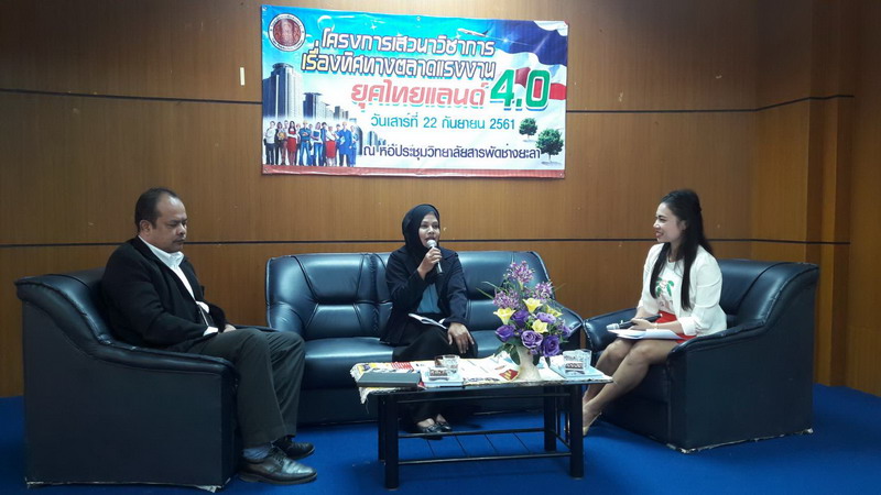 วันที่ 22 กันยายน 2561 วิทยาลัยสารพัดช่างยะลาดำเนินโครงการเสวนาวิชาการ เรื่องทิศทางตลาดแรงงาน ยุคไทยแลนด์ 4.0 โดยนายอิทธิฤทธิ์ ศรีชุมภู รองผู้อำนวยการวิทยาลัยสารพัดช่างยะลา เป็นประธาน