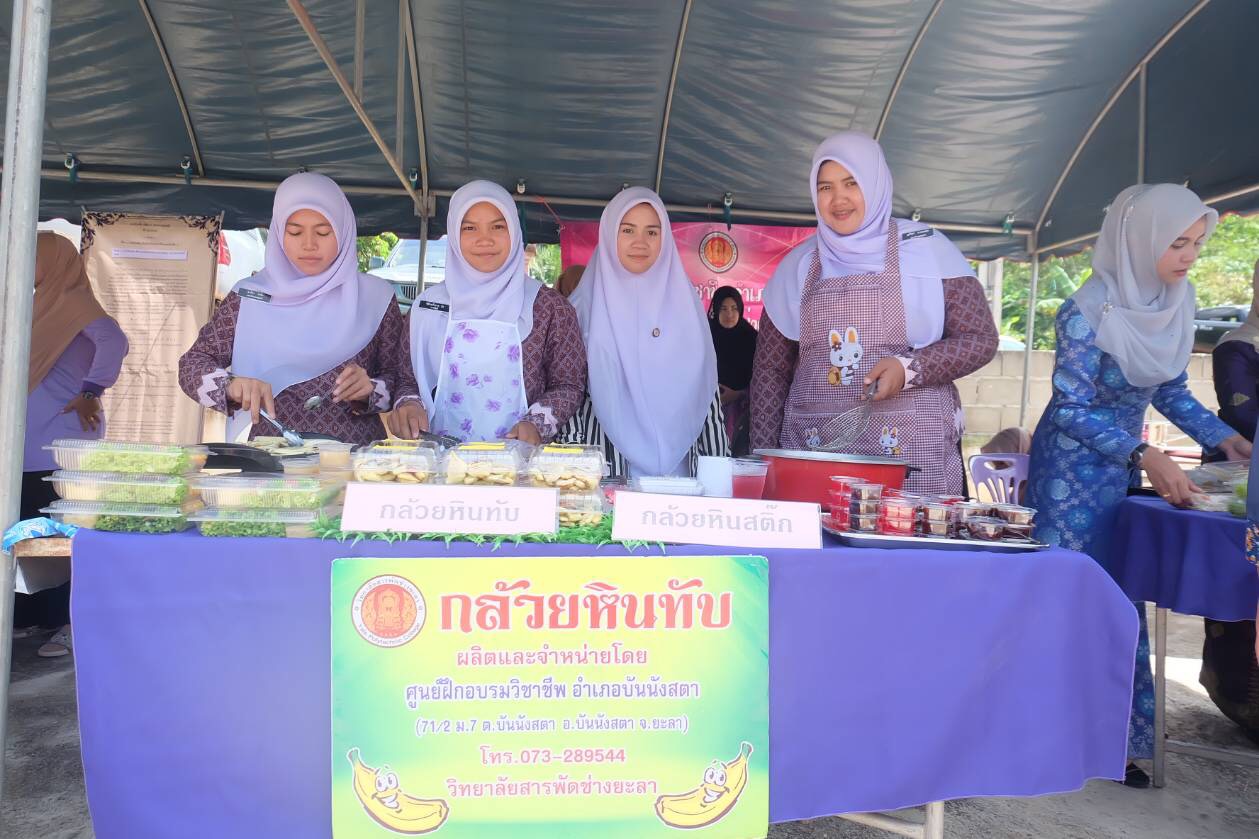 วันพฤหัสบดี ที่ 22 พฤศจิกายน 2561 ศูนย์ฝึกอบรมวิชาชีพอำเภอบันนังสตา ได้รับมอบหมายจากนายภาณุวัฒน์ บุญยะรัตน์ ผู้อำนวยการวิทยาลัยสารพัดช่างยะลา ให้เข้าร่วมกิจกรรมอำเภอยิ้มเคลื่อนที่ ร่วมกับอำเภอบันนังสตา โดยมีกิจกรรมฝึกอบรม 108 อาชีพ วิชา แซนวิชทอด และโครงการส่งเสริมประกอบอาชีพอิสระในกลุ่มผู้เรียนอาชีวศึกษา กลุ่มธุรกิจกล้วยหินทับ และกลุ่มธุรกิจกล้วยหินสติ๊ก นำผลิตภัณฑ์ไปจำหน่ายภายในงาน ณ มัสยิดบ้านเตี๊ยะ หมู่ 5 บ้านกาโสด ตำบลบันนังสตา อำเภอบันนังสตา จังหวัดยะลา