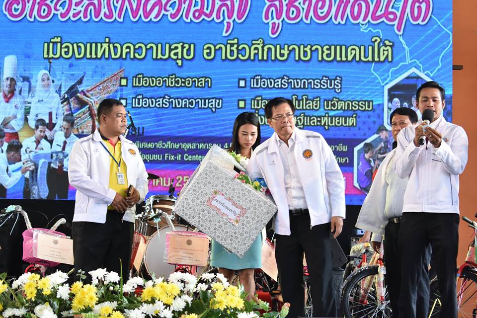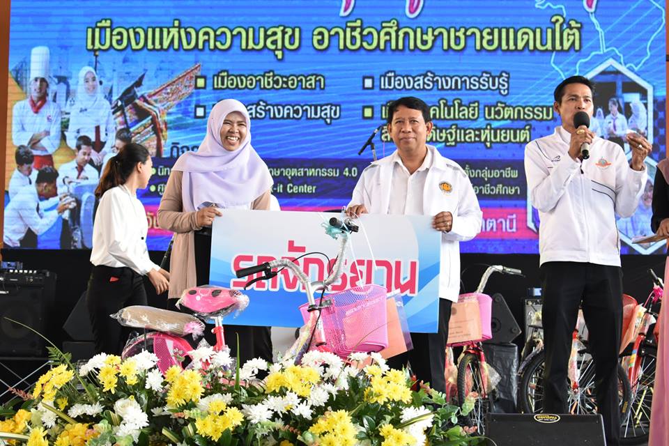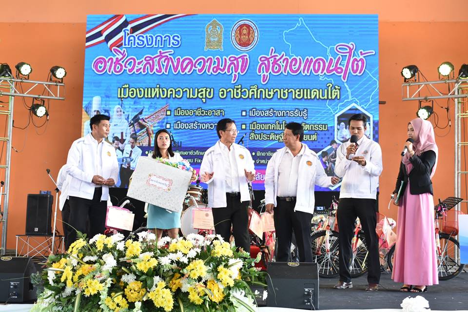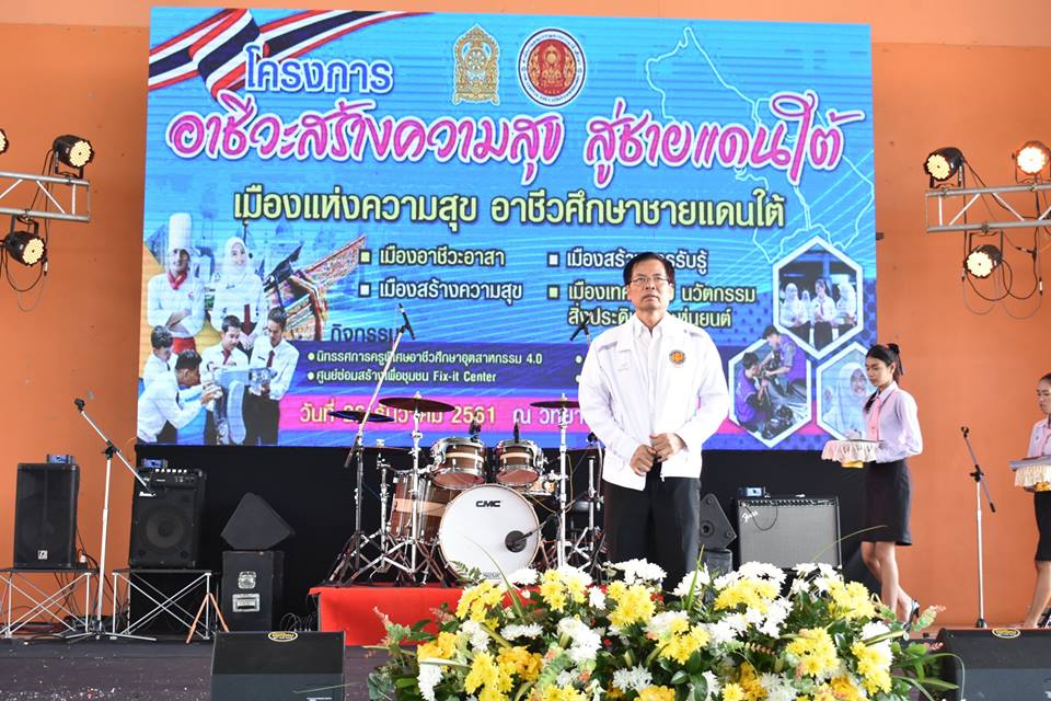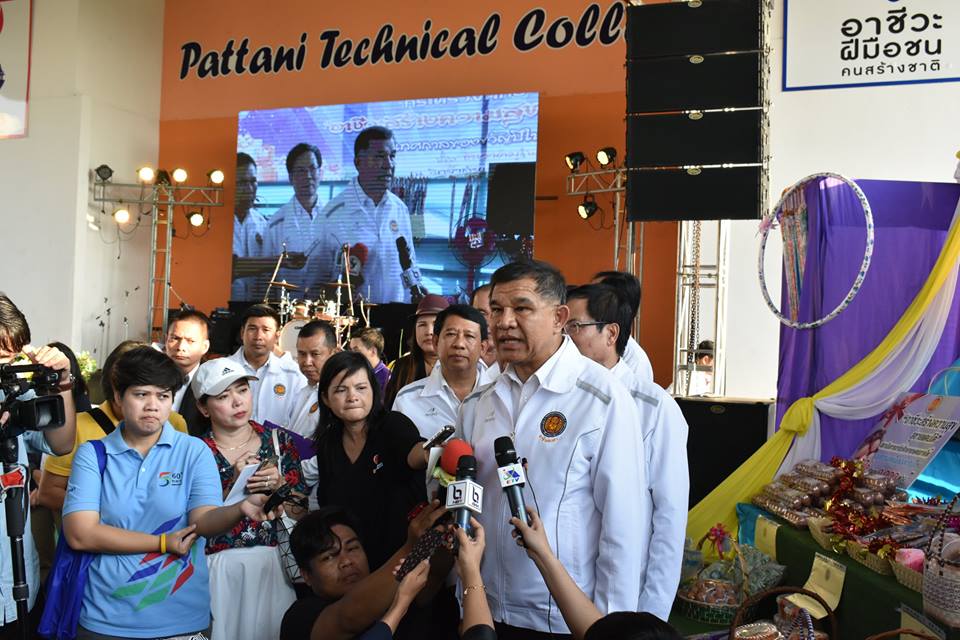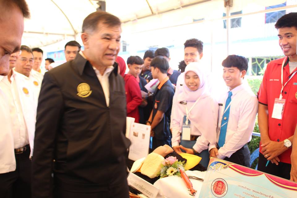วันที่ 26 ธันวาคม 2561 พลเอก สุรเชษฐ์ ชัยวงศ์ รัฐมนตรีช่วยว่าการกระทรวงศึกษาธิการ พร้อมด้วย ดร.สุเทพ ชิตยวงษ์ เลขาธิการคณะกรรมการการอาชีวศึกษา , ดร.ประชาคม จันทรชิต รองเลขาธิการคณะกรรมการการอาชีวศึกษา ที่ปรึกษา และผู้อำนวยการสถานศึกษาที่เกี่ยวข้อง เดินเยี่ยมชมนิทรรศการ “เมืองเทคโนโลยี นวัตกรรม สิ่งประดิษฐ์และหุ่นยนต์” โครงการอาชีวะสร้างความสุข สู่ชายแดนใต้ ณ วิทยาลัยเทคนิคปัตตานี อ.เมือง จ.ปัตตานี