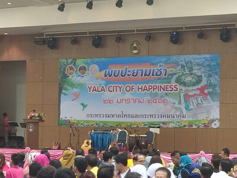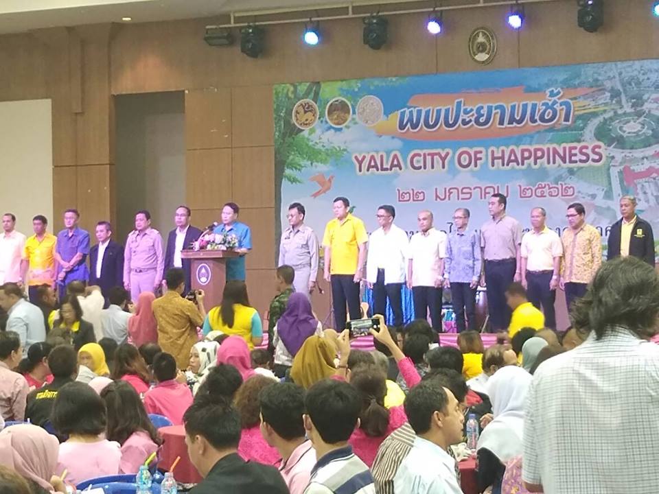 วันที่ 22 มกราคม 2562 เวลา 07.30 น. นายภาณุวัฒน์ บุญยะรัตน์ ผู้อำนวยการวิทยาลัยสารพัดช่างยะลา พร้อมด้วย คณะผู้บริหาร ร่วมกิจกรรมพบปะยามเช้า “YALA CITY OF HAPPINESS”เพื่อสร้างความสัมพันธ์อันดีต่อกันระหว่างหน่วยงาน ภายในจังหวัดยะลา จัดโดย กระทรวงมหาดไทยและกระทรวงคมนาคม โดยมี นายอนุชิต ตระกูลมุทุตา ผู้ว่าราชการจังหวัดยะลา ประธานเปิดกิจกรรม ณ หอประชุมเล็ก มหาวิทยาลัยราชภัฎยะลา
