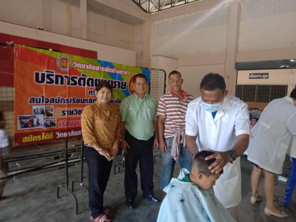 วันที่ 7 กุมภาพันธ์ 2562 นักศึกษาสาขาวิชาตัดผม และเสริมสวย ออกให้บริการตัดผม โดยมีนายสมาน บุกะอะ ครูผู้ควบคุม ณ โรงเรียนเทศบาล 5 อำเภอเมือง จังหวัดยะลา