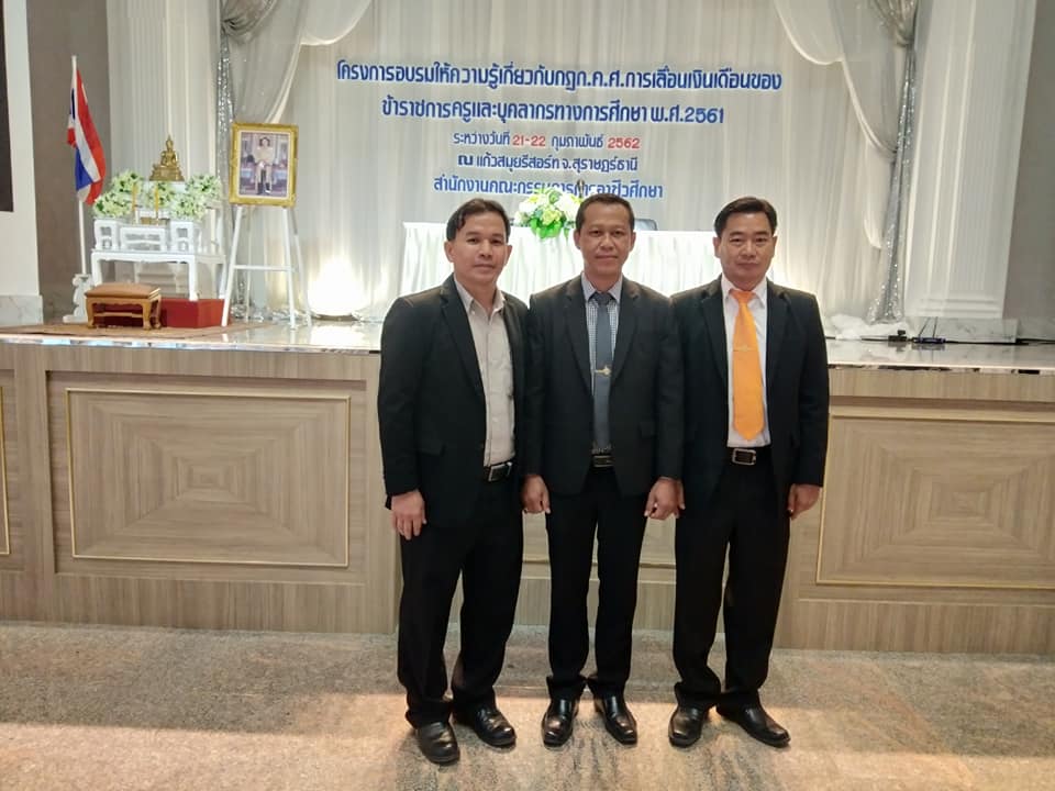 วันที่ 21-22 กุมภาพันธ์ 2562 ว่าที่ ร.ต. วิเนตร ถนอมรักษษา รองผู้อำนวยการวิทยาลัยสารพัดช่างยะลา และนายอาหามะ ดือเร๊ะ ครู วิทยาลัยสารพัดช่างยะลา เข้าร่วมโครงการอบรมให้ความรู้เกี่ยวกับกฎ ก.ค.ศ. การเลื่อนเงินเดือนของข้าราชการครูและบุคลากรทางการศึกษา พ.ศ. 2561 ณ โรงแรมแก้วสมุยรีสอร์ท จังหวัดสุราษฎร์ธานี