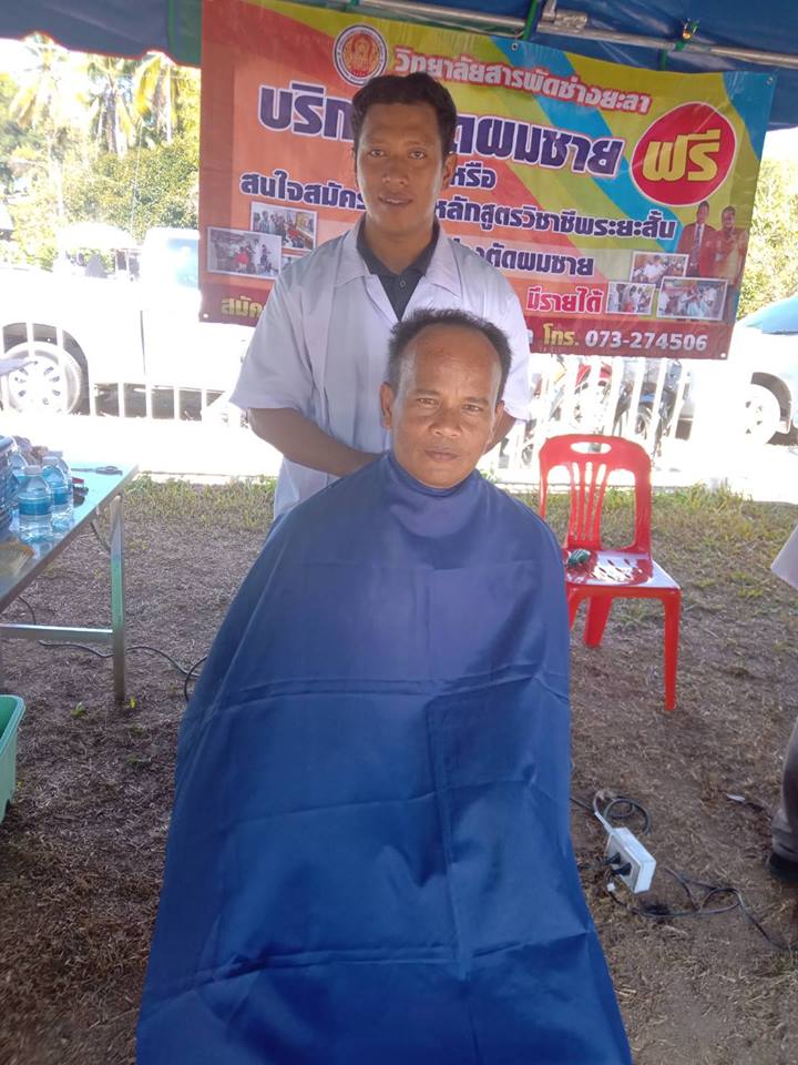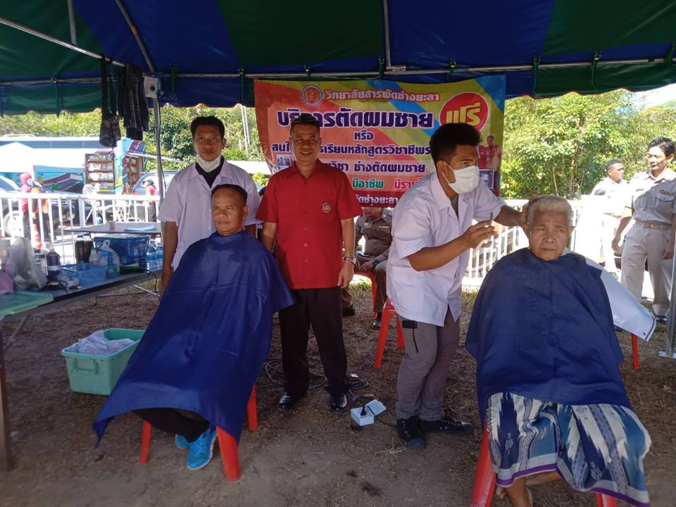 วันที่ 21 กุมภาพันธ์ 2562 นักศึกษาสาขาวิชาตัดผม และเสริมสวย ออกบริการตัดผม ในงานโครงการจังหวัดเคลื่นที่ "หน่วยบำบัดทุกข์ บำรุงสุข สร้างรอยยิ้มให้ประชาชน" โดยมีนายสมาน บุกะอะ ครูผู้ควบคุม ณ สนามสังลัง บ้านกะแปะ อำเภอเบตง จังหวัดยะลา