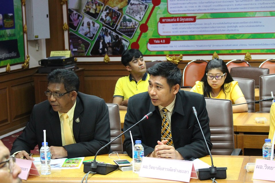 วันที่ 21 มิถุนายน 2562 นายภาณุวัฒน์ บุญยะรัตน์ ผู้อำนวยการวิทยาลัยสารพัดช่างยะลา นางนุจรี ฮ่องย่อง ครู และว่าที่ ร.ต.หญิงนงเยาว์ สาราบรรพ์ เจ้าหน้าที่งานวิจัยฯ ร่วมประชุมซักซ้อมเตรียมงานแถลงข่าววาระจังหวัดยะลา Yala 4.0 โดยมีนายอนุชิต ตระกูลมุทุตา ผู้ว่าราชการจังหวัดยะลา ประธานที่ประชุม ณ ห้องประชุมพิกุล ศาลากลางจังหวัดยะลา