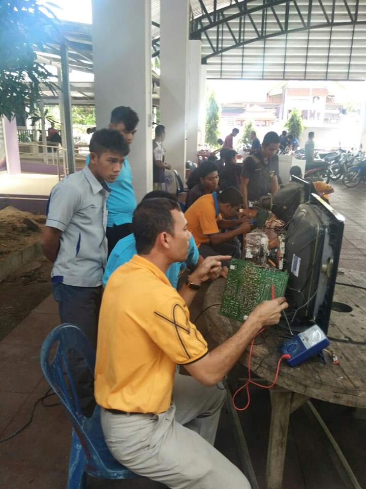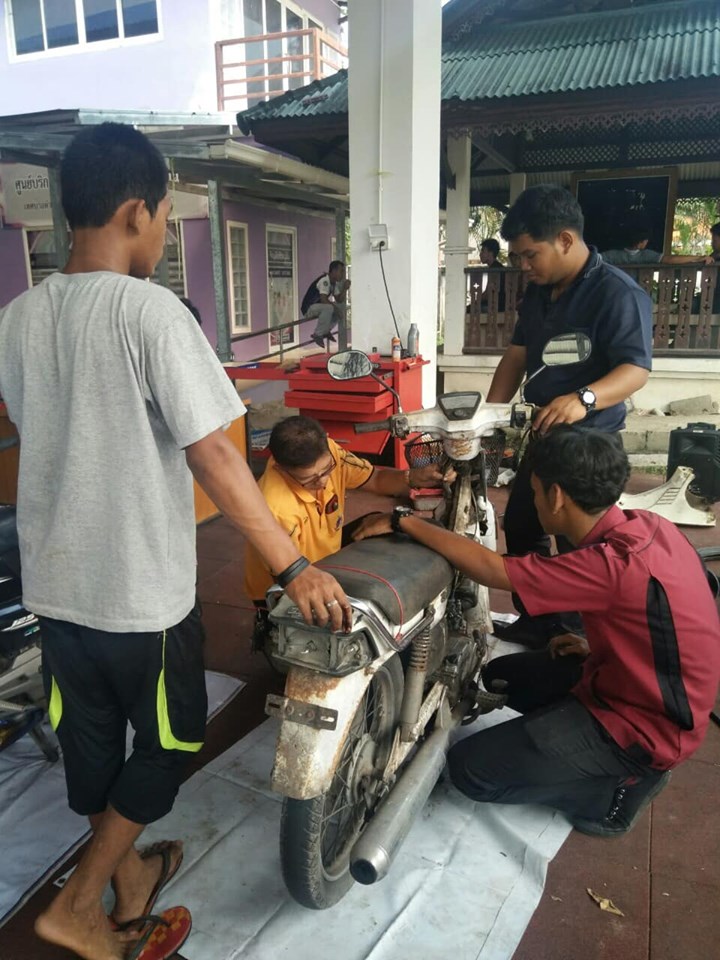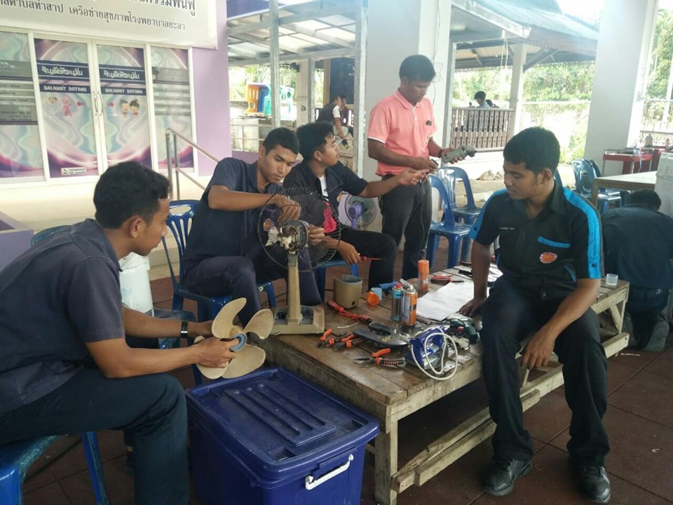 วันที่ 22 มิถุนายน 2562 งานโครงการพิเศษและบริการชุมชน วิทยาลัยสารพัดช่างยะลา ออกบริการซ่อมเครื่องใช้ไฟฟ้า ซ่อมรถจักรยานยนต์ ตามโครงการศูนย์ซ่อมสร้างเพื่อชุมชน FIX IT CENTER THAILAND 4.0 ณ หน้าโรงพยาบาลส่งเสริมสุขภาพตำบลท่าสาป อำเภอเมือง จังหวัดยะลา