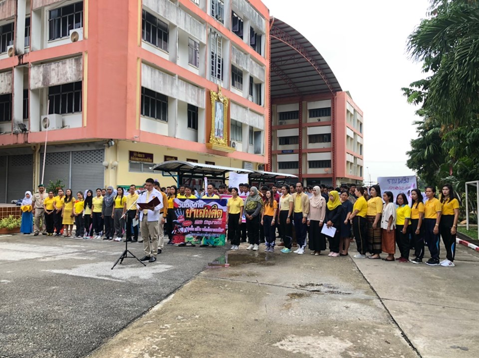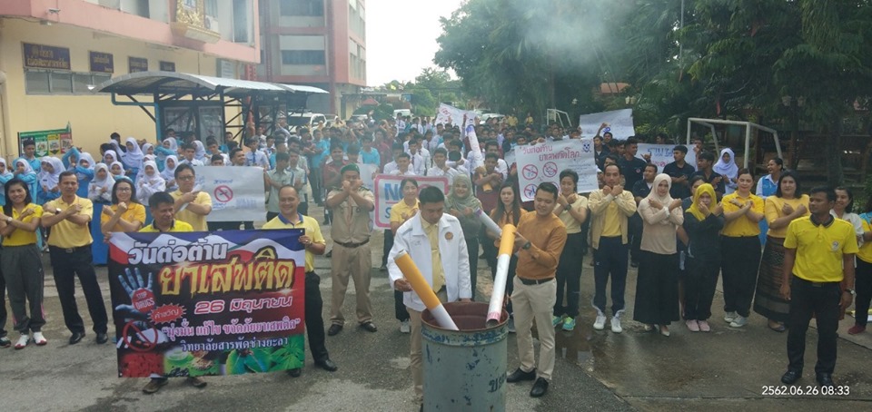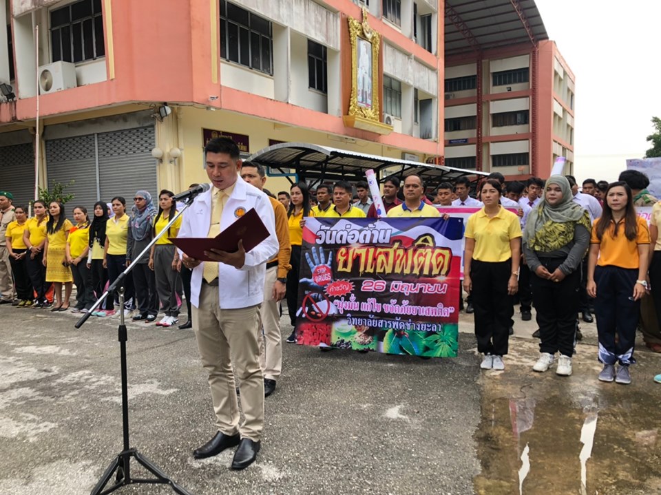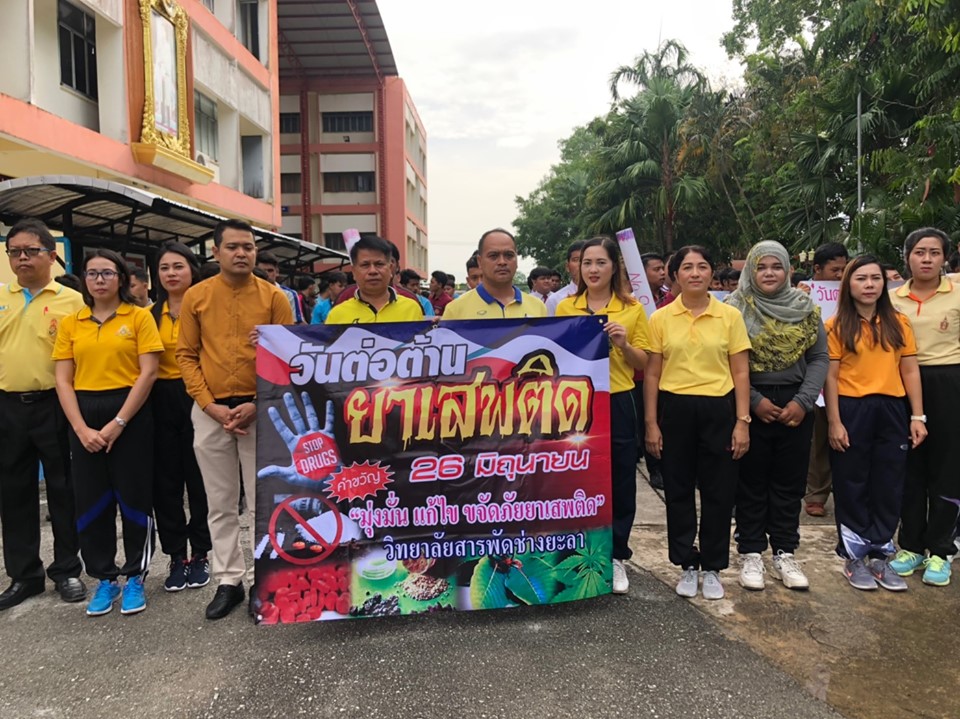 วันที่ 26 มิถุนายน 2562 วิทยาลัยสารพัดช่างยะลา ดำเนินกิจกรรมรณรงค์ประชาสัมพันธ์ เนื่องในวันต่อต้านยาเสพติด (26 มิถุนายน) ประจำปี 2562 โดยมีนายภาณุวัฒน์ บุญยะรัตน์ ผู้อำนวยการวิทยาลัยสารพัดช่างยะลา เป็นผู้อ่านสาร เนื่องในวันต่อต้านยาเสพติด (26 มิถุนายน) ประจำปี 2562 ณ วิทยาลัยสารพัดช่างยะลา