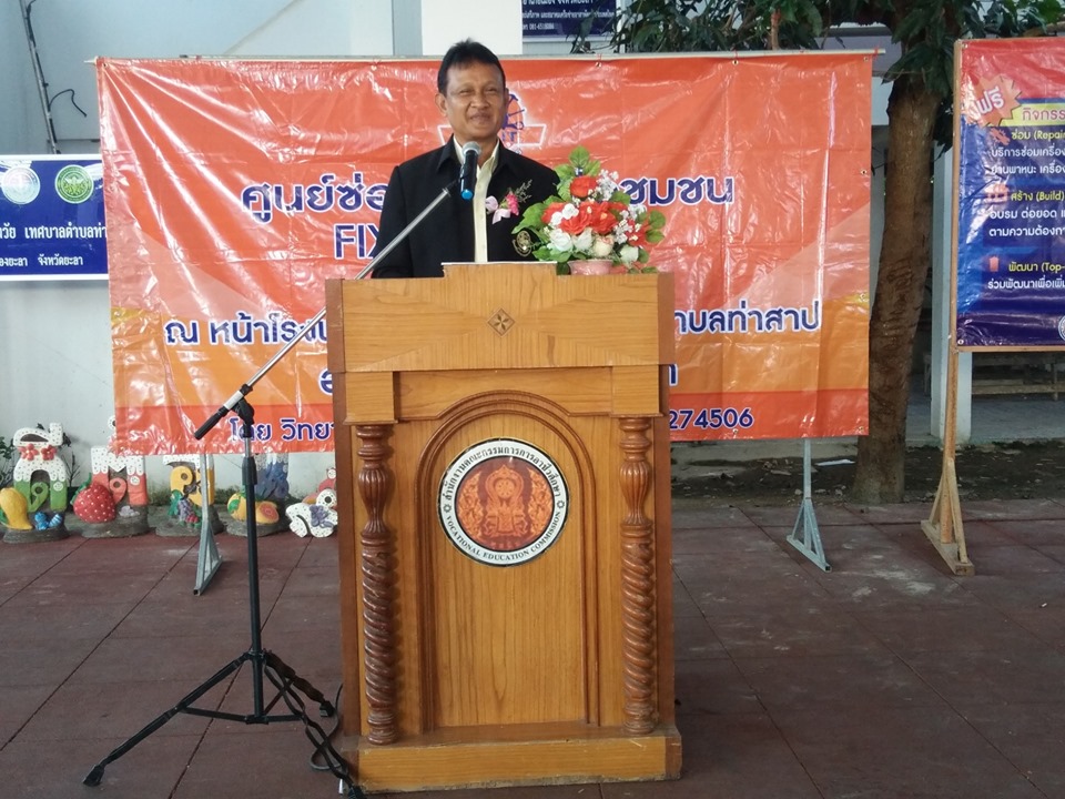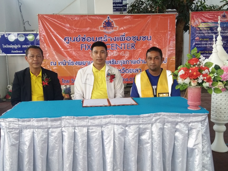วันที่ 29 มิถุนายน 2562 งานโครงการพิเศษและบริการชุมชน วิทยาลัยสารพัดช่างยะลา ดำเนินพิธีเปิดโครงการศูนย์ซ่อมสร้างเพื่อชุมชน FIX IT CENTER THAILAND 4.0 โดยมีนายสุวรรณ ช่วยนุกูล นายอำเภอเมืองยะลา ประธานพิธีเปิด และนายภาณุวัฒน์ บุญยะรัตน์ ผู้อำนวยการวิทยาลัยสารพัดช่างยะลา ผู้กล่าวรายงาน ณ หน้าโรงพยาบาลส่งเสริมสุขภาพตำบลท่าสาป อำเภอเมือง จังหวัดยะลา