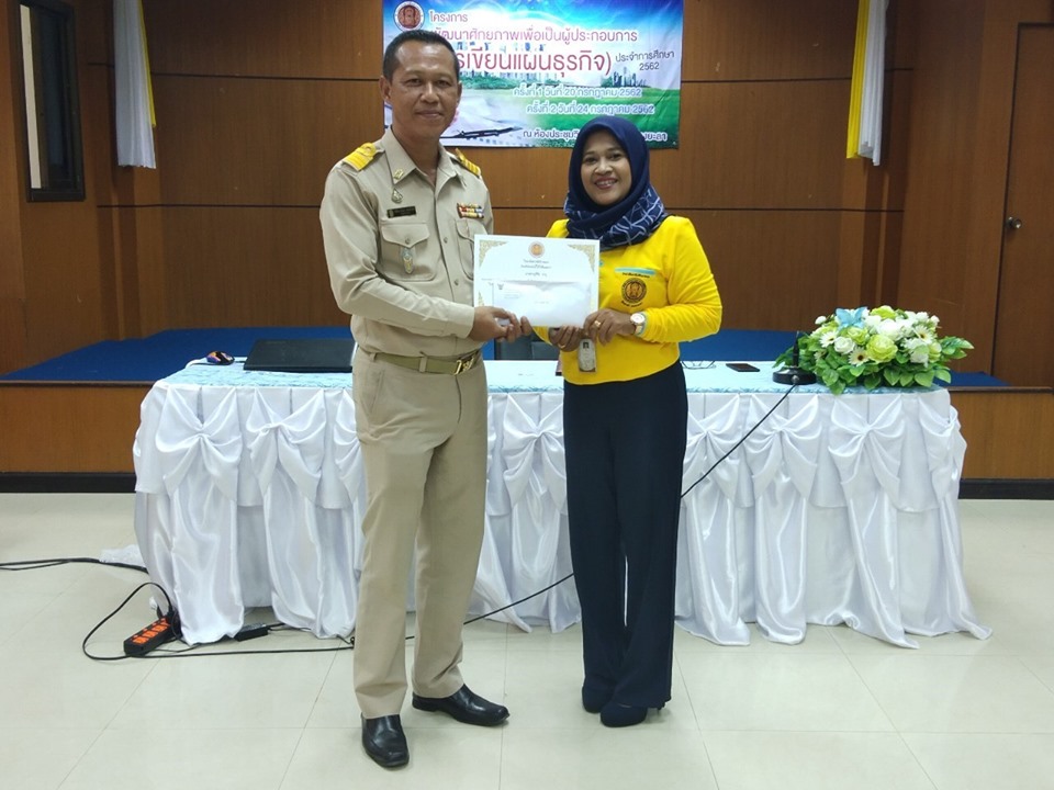 วันที่ 24 กรกฎาคม 2562 แผนกวิชาการบัญชี ดำเนินโครงการพัฒนาศักยภาพเพื่อเป็นผู้ประกอบการ โดยมี ว่าที่ ร.ต. วิเนตร ถนอมรักษ์ษา รองผู้อำนวยการวิทยาลัยสารพัดช่างยะลา เป็นประธานในพิธี ณ ห้องประชุมสะเตง วิทยาลัยสารพัดช่างยะลา