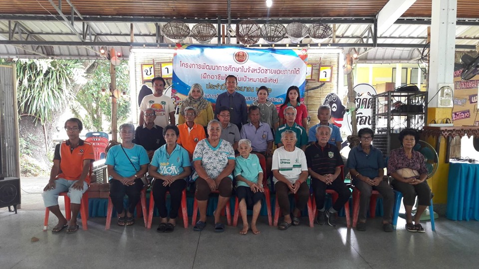 68758166 1555219197936746 5336510080894369792 nวัน เสาร์ ที่ 24 สิงหาคม 2562 นายภาณุวัฒน์ บุญยะรัตน์ ผู้อำนวยการวิทยาลัยสารพัดช่างยะลา ได้มอบหมายให้ ว่าที่ ร.ต.วิเนตร ถนอมรักษ์ษา รองผู้อำนวยการวิทยาลัยสารพัดช่างยะลาเป็นประธานในพิธีเปิดโครงการพัฒนาการศึกษาในจังหวัดชายแดนใต้ (ฝึกอาชีพให้กลุ่มเป้าหมายพิเศษ) ประจำปีงบประมาณ 2562 ณ ศูนย์พัฒนาการจัดการสังคมผู้สูงอายุบ้านทักษิณจังหวัดยะลา