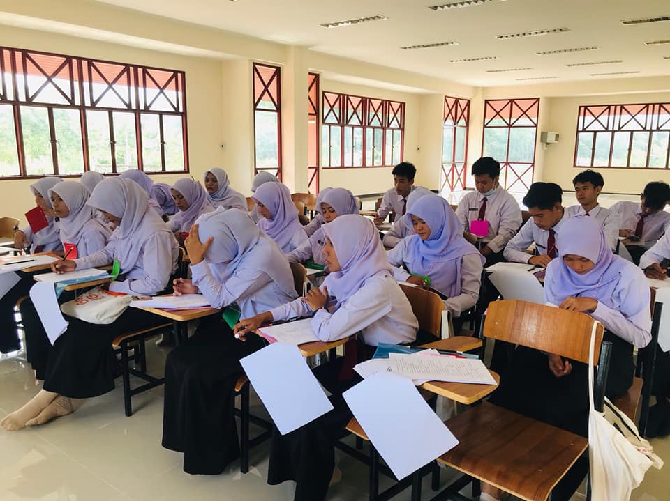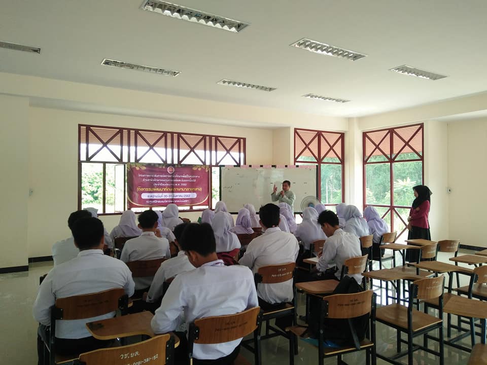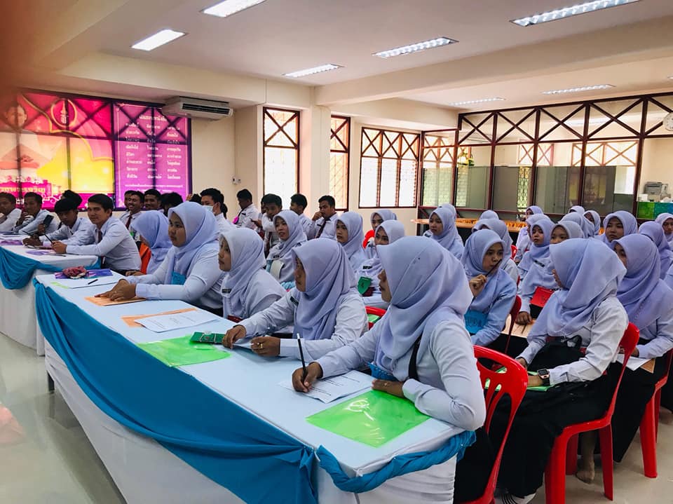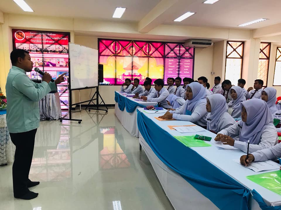 69272750 2365948226991243 5801464093395124224 nวันศุกร์ ที่ 30 สิงหาคม 2562 ศูนย์ฝึกอบรมวิชาชีพอำเภอบันนังสตา ดำเนินโครงการยกระดับการจัดการอาชีวศึกษาเพื่อเป็นศูนย์กลางด้านอาชีวศึกษาของภูมิภาคเอเชียตะวันออกเฉียงใต้ ประจำปีงบประมาณ 2562 (กิจกรรมพัฒนาภาษามลายูกลาง) โดยว่าที่ร้อยตรี วิเนตร ถนอมรักษ์ษา รองผู้อำนวยการวิทยาลัยสารพัดช่างยะลา เป็นประธานในพิธี ณ ศูนย์ฝึกอบรมวิชาชีพอำเภอบันนังสตา