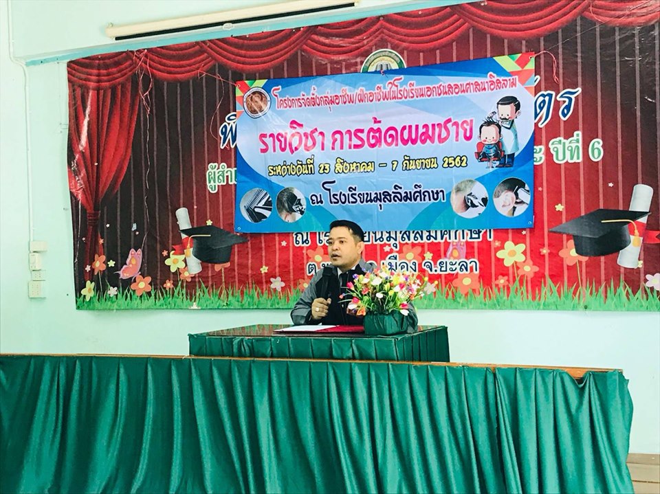 วันเสาร์ ที่ 7 กันยายน 2562 นายภาณุวัฒน์ บุญยะรัตน์ ผู้อำนวยการวิทยาลัยสารพัดช่างยะลา มอบหมายให้นายโกวิทย์ นวลศรี รองผู้อำนวยการฝ่ายแผนงานและความร่วมมือเป็นประธานในพิธีปิดโครงการจัดตั้งกลุ่มอาชีพ/ฝึกอาชีพในโรงเรียนเอกชนสอนศาสนา กลุ่มที่ 2 รายวิชา การตัดผมชาย ณ โรงเรียนมุสลิมศึกษา โดยมีนางสาวนูรยานี สาแม เป็นผู้กล่าวรายงานในพิธี