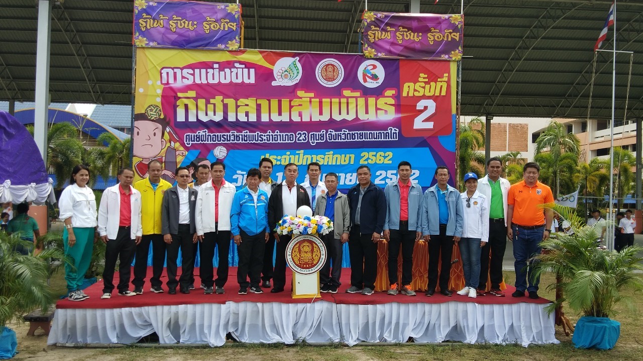 วันอาทิตย์ ที่ 15 กันยายน 2562 นายภาณุวัฒน์ บุญยะรัตน์ ผู้อำนวยการวิทยาลัยสารพัดช่างยะลา พร้อมด้วย ว่าที่ร้อยตรี วิเนตร ถนอมรักษ์ษา รองผู้อำนวยการวิทยาลัยสารพัดช่างยะลา ครู บุคลากร และนักศึกษา ศูนย์ฝึกอบรมวิชาชีพอำเภอบันนังสตา เข้าร่วมการแข่งขันกีฬาสานสัมพันธ์ศูนย์ฝึกอบรมวิชาชีพประจำอำเภอ 23 ศูนย์ จังหวัดชายแดนภาคใต้ ครั้งที่ 2 ประจำปีการศึกษา 2562 โดยนายประเสริฐ แก้วเพ็ชร นายกสภาสถาบันการอาชีวศึกษาภาคใต้ 3 เป็นประธานในพิธีเปิดงาน ณ วิทยาลัยเทคนิคปัตตานี