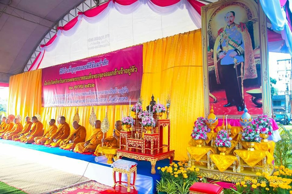 วันที่ 23 ตุลาคม 2562 เวลา 06.00 น. นายภาณุวัฒน์ บุญยะรัตน์ ผู้อำนวยการวิทยาลัยสารพัดช่างยะลา พร้อมด้วย ครู และบุคลากรทางการศึกษา ร่วมพิธีทำบุญตักบาตร ข้าวสารอาหารแห้ง เนื่องในวันคล้ายวันสวรรคตพระบาทสมเด็จพระจุลจอมเกล้าเจ้าอยู่หัว เพื่อน้อมรำลึกในพระมหากรุณาธิคุณ โดยมี นายวรเชษฐ พรมโอภาษ รองผู้ว่าราชการจังหวัดยะลา ประธานในพิธี ณ ลานพระบรมราชานุสาวรีย์ พระบาทสมเด็จพระเจ้าอยู่หัว สนามโรงพิธีช้างเผือก เทศบาลนครยะลา จังหวัดยะลา