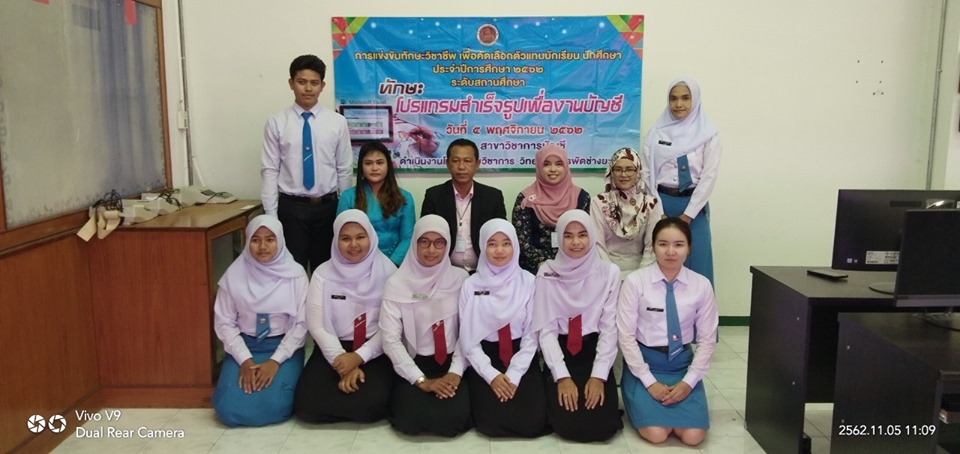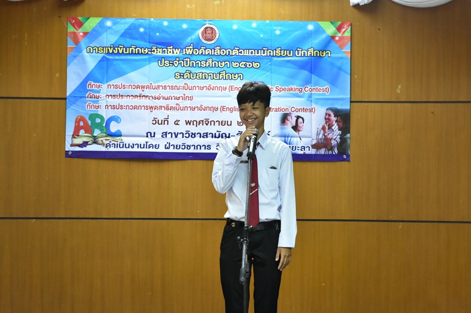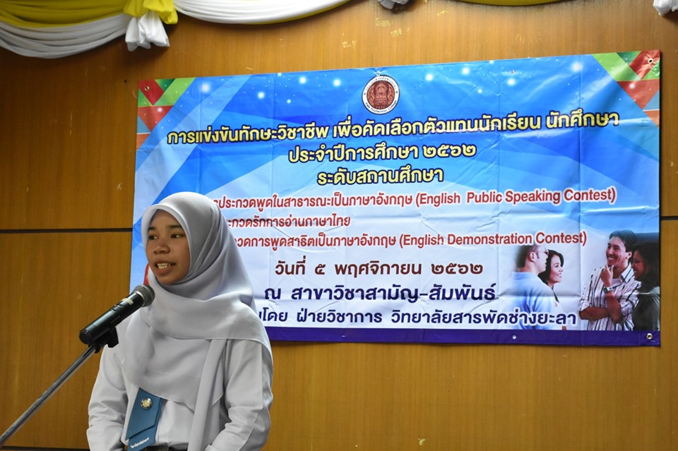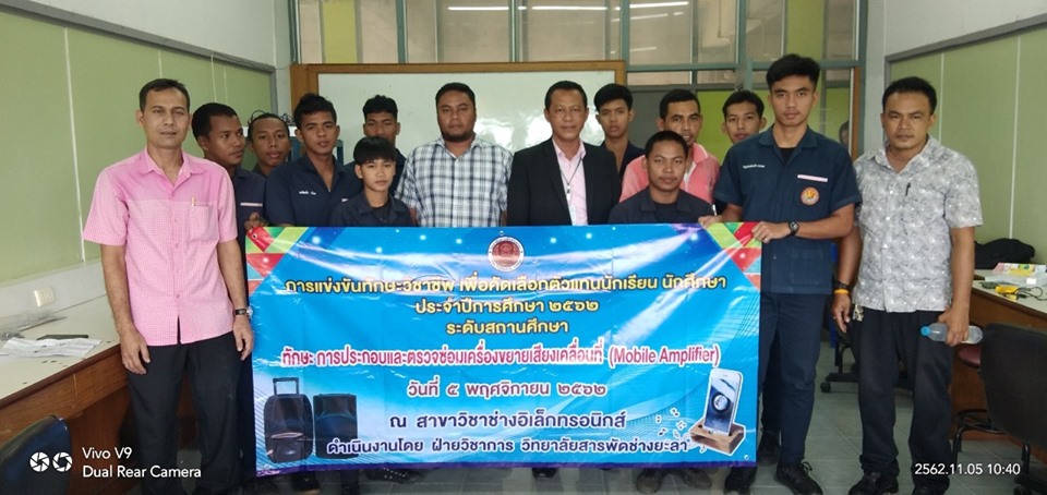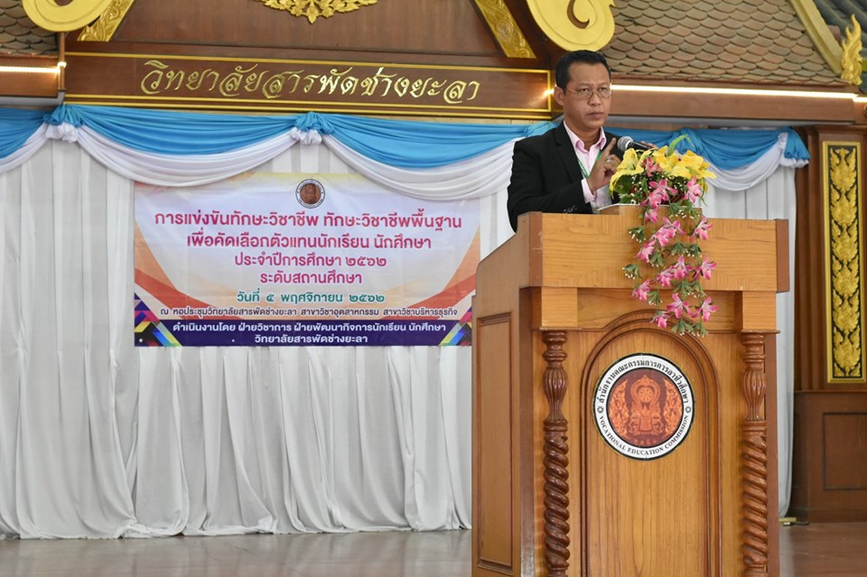 วันอังคาร ที่ 5 พฤศจิกายน 2562 นายภาณุวัฒน์ บุญยะรัตน์ ผู้อำนวยการวิทยาลัยสารพัดช่างยะลา ได้มอบหมายให้ ว่าที่ ร้อยตรีวิเนตร ถนอมรักษ์ษา รองผู้อำนวยการวิทยาลัยสารพัดช่างยะลา เป็นประธานในพิธีเปิดการแข่งขันทักษะวิชาชีพ เพื่อคัดเลือกตัวแทนนักเรียน นักศึกษา ระดับสถานศึกษาประจำปีการศึกษา 2562 ณ วิทยาลัยสารพัดช่างยะลา