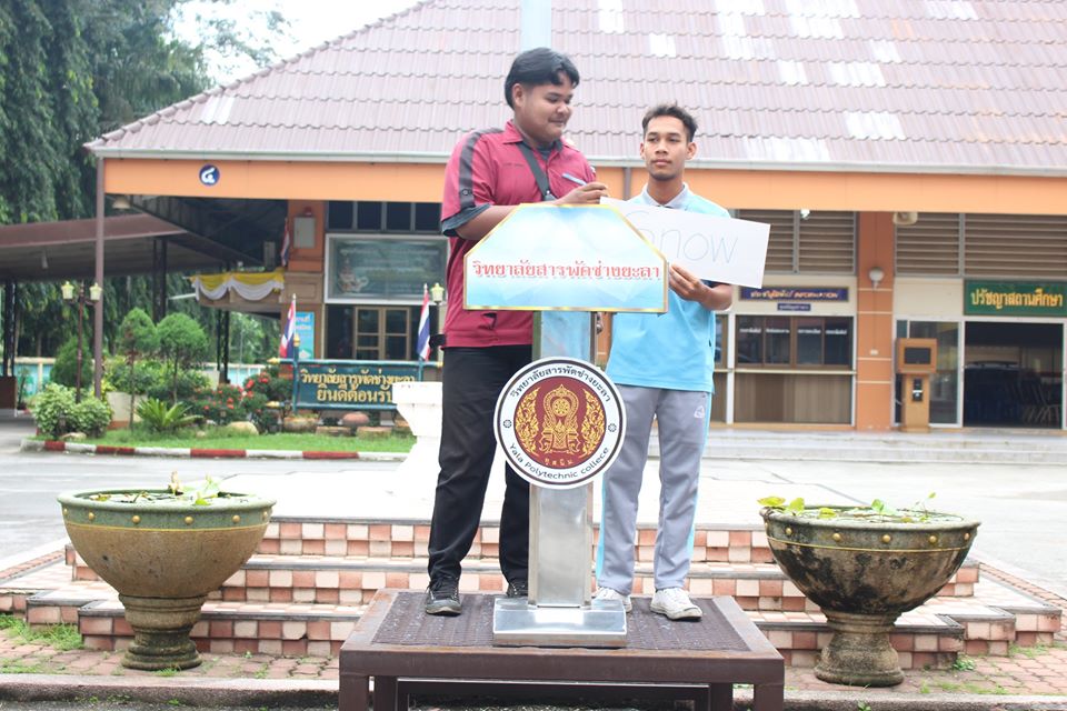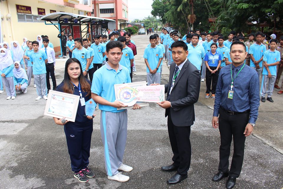 วันที่ 11 ธันวาคม 2562 กิจกรรมหน้าเสาธง นายภาณุวัฒน์ บุญยะรัตน์ ผู้อำนวยการวิทยาลัยสารพัดช่างยะลา พร้อมด้วย นายโกวิทย์ นวลศรี รองผู้อำนวยการวิทยาลัยสารพัดช่างยะลา มอบเกียรติบัตร ให้กับ นายมะสุกรี ดาโอะ นักศึกษา ระดับ ประกาศนียบัตรวิชาชีพชั้นสูง วิทยาลัยสารพัดช่างยะลา ได้รับรางวัล ชนะเลิศ สมาชิก ดีเด่น ระดับภาคใต้ ประจำปีการศึกษา 2562 สถานศึกษา ขนาดเล็ก ในงานประชุมวิชาการองค์การนักวิชาชีพในอนาคตแห่งประเทศไทย ระดับภาค ภาคใต้ ครั้งที่ 30 ประจำปีการศึกษา 2562 และในกิจกรรมหน้าเสาธง มีการนำเสนอ ภาษาอังกฤษ และ ออกกำลังกาย 5 นาที ในทุก วันพุธ ณ วิทยาลัยสารพัดช่างยะลา