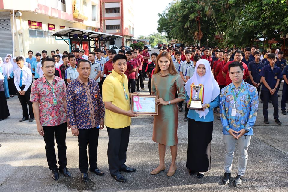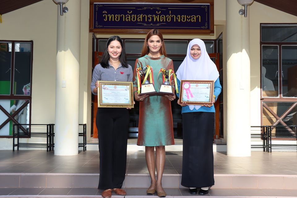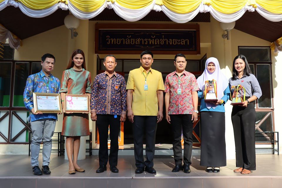 วันพฤหัสบดี ที่ 12 ธันวาคม 2562 นายภาณุวัฒน์ บุญยะรัตน์ ผู้อำนวยการวิทยาลัยสารพัดช่างยะลา พร้อมด้วย ว่าที่ ร้อยตรี วิเนตร ถนอมรักษ์ษา และ นายโกวิทย์ นวลศรี รองผู้อำนวยการวิทยาลัยสารพัดช่างยะลา มอบเกียรติบัตร พร้อมโล่รางวัล ให้กับ นักศึกษาหลักสูตรวิชาชีพระยะสั้น ได้รับรางวัล