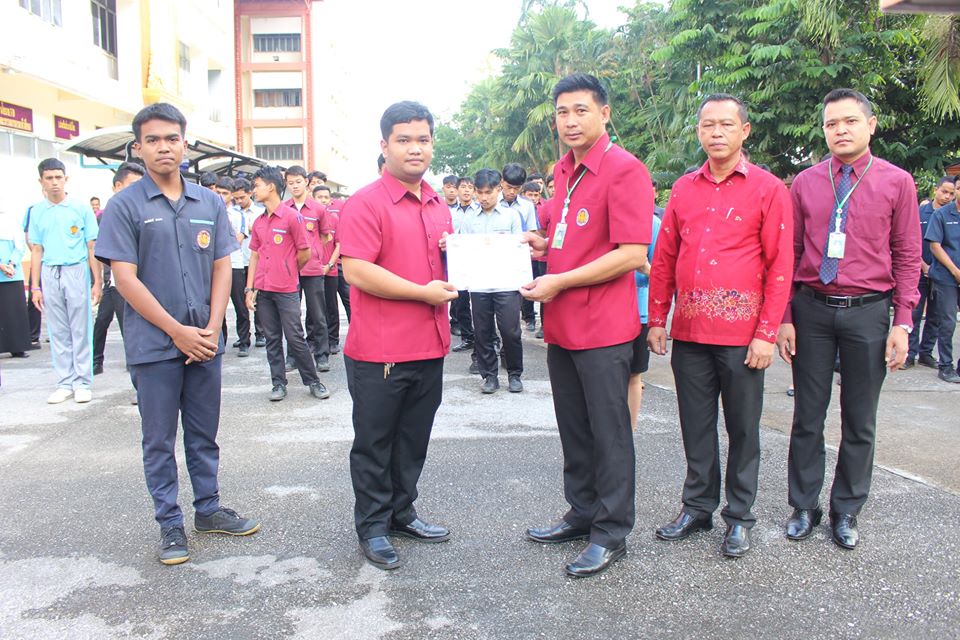 วันศุกร์ ที่ 13 ธันวาคม 2562 นายภาณุวัฒน์ บุญยะรัตน์ ผู้อำนวยการวิทยาลัยสารพัดช่างยะลา พร้อมด้วย ว่าที่ ร้อยตรีวิเนตร ถนอมรักษ์ษา และนายโกวิทย์ นวลศรี รองผู้อำนวยการวิทยาลัยสารพัดช่างยะลา มอบเกียรติบัตรให้แก่ ครู นักเรียน นักศึกษา ที่เข้าร่วมประกวดและแข่งขันในงานประชุมวิชาการองค์การนักวิชาชีพในอนาคตแห่งประเทศไทย การแข่งขันทักษะวิชาชีพและทักษะพื้นฐาน ระดับภาค ภาคใต้ ครั้งที่ 30 ปีการศึกษา 2562 ระหว่างวันที่ 2-6 ธันวาคม 2562 ณ โรงแรมรอยัลภูเก็ต
