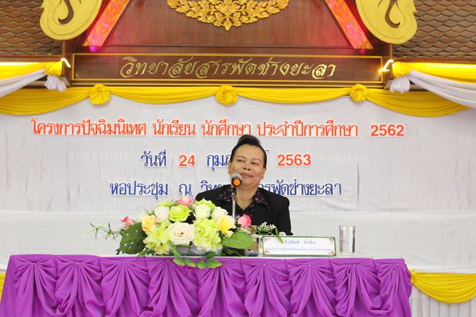วันที่ 24/2/63 นายภาณุวัฒน์ บุญยะรัตน์ ผู้อำนวยการวิทยาลัยสารพัดช่างยะลา เป็นประธานในพิธี โครงการ ปัจฉิมนิเทศ นักเรียน นักศึกษา ประจำปีการศึกษา 2562 เพื่อชี้แนะแนวทางและให้ความรู้ ความเข้าใจการศึกษาต่อและประกอบอาชีพ สามารถปฏิบัติตนและอยู่ร่วมในสังคมใหม่เมื่อนักเรียนสำเร็จการศึกษา ณ หอประชุม วิทยาลัยสารพัดช่างยะลา