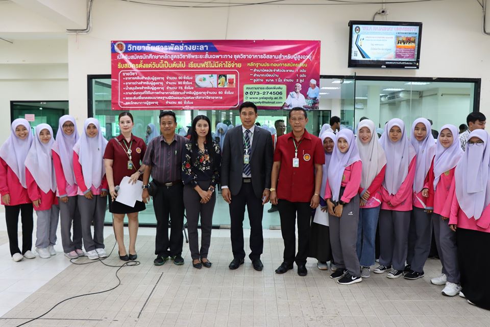 วันที่ 4 มีนาคม 2563 นายภาณุวัฒน์ บุญยะรัตน์ ผู้อำนวยการวิทยาลัยสารพัดช่างยะลา พร้อมด้วยครูและบุคลากรทางการศึกษา เปิดรับสมัครนักศึกษาใหม่หลักสูตรวิชาชีพระยะสั้นและหลักสูตรวิชาชีพระยะสั้น (เฉพาะทาง) ณ มหาวิทยาลัยราชภัฏยะลา