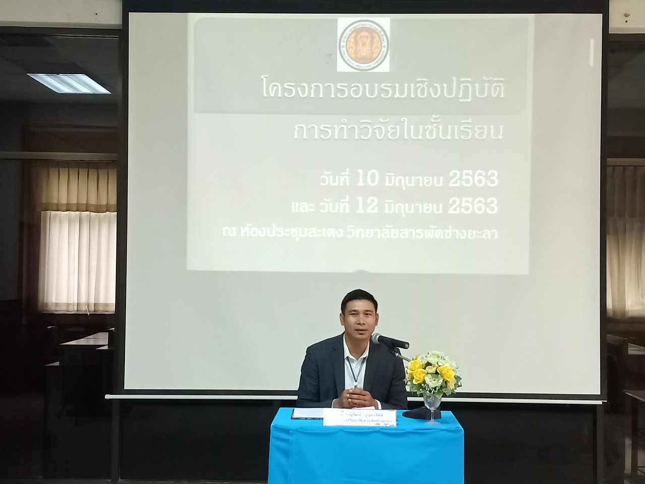 วันที่ 10 มิถุนายน 2563 เวลา 09.00 น. นายภาณุวัฒน์ บุญยะรัตน์ ผู้อำนวยการวิทยาลัยสารพัดช่างยะลา พร้อมด้วย คณะครู วิทยาลัยสารพัดช่างยะลา เข้าร่วมอบรม โครงการอบรมเชิงปฏิบัติการทำวิจัยในชั้นเรียน โดยมีวิทยากร ผศ.ดร.บุญสิทธิ์ ไชยชนะ เป็นผู้บรรยายให้กับคณะครู วช.ยะลา ณ ห้องประชุมสะเตง วิทยาลัยสารพัดช่างยะลา
